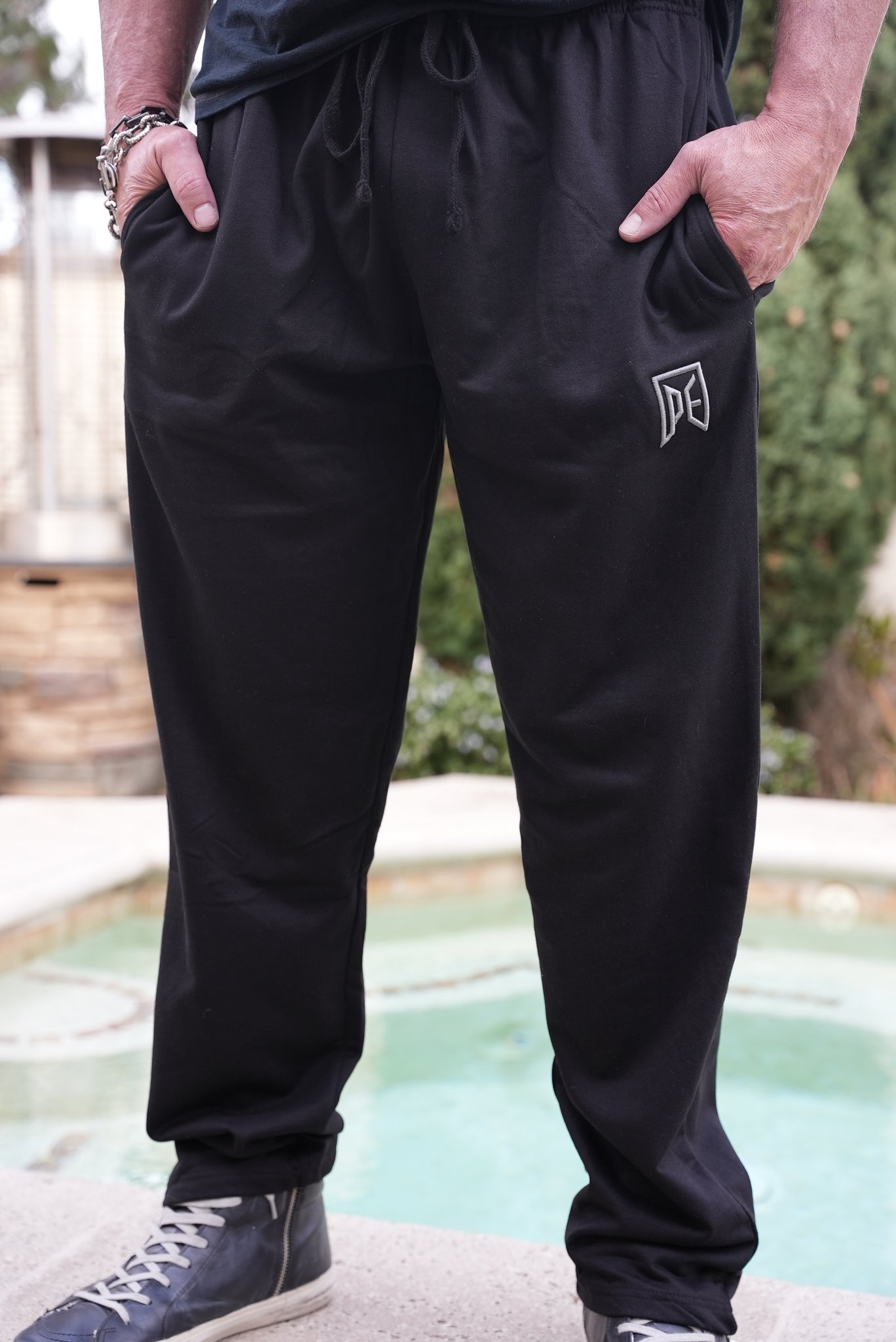These sweatpants are cotton, straight leg, with the Positively EVOL logo 3-D embroidered. They're comfy with lined pockets and a draw string waist. They're super soft yet durable so they're perfect for lounging or working out.